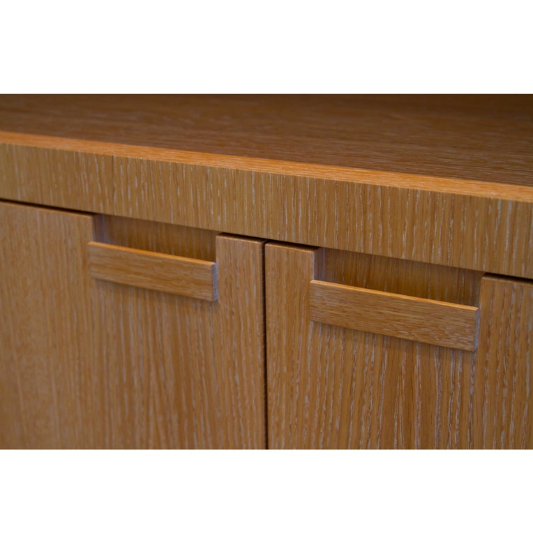 This tall bookcase was designed for a client who wanted hidden storage as well as space to display lots of books. The veneer work features cross banded edges. We made two of them - one for either side of an archway.